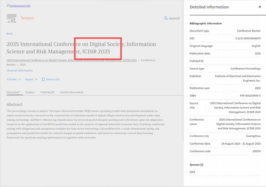 ICDIR2025-见刊 | ICDIR 2025-EI检索 | ICDIR 2025-Scopus检索 |
